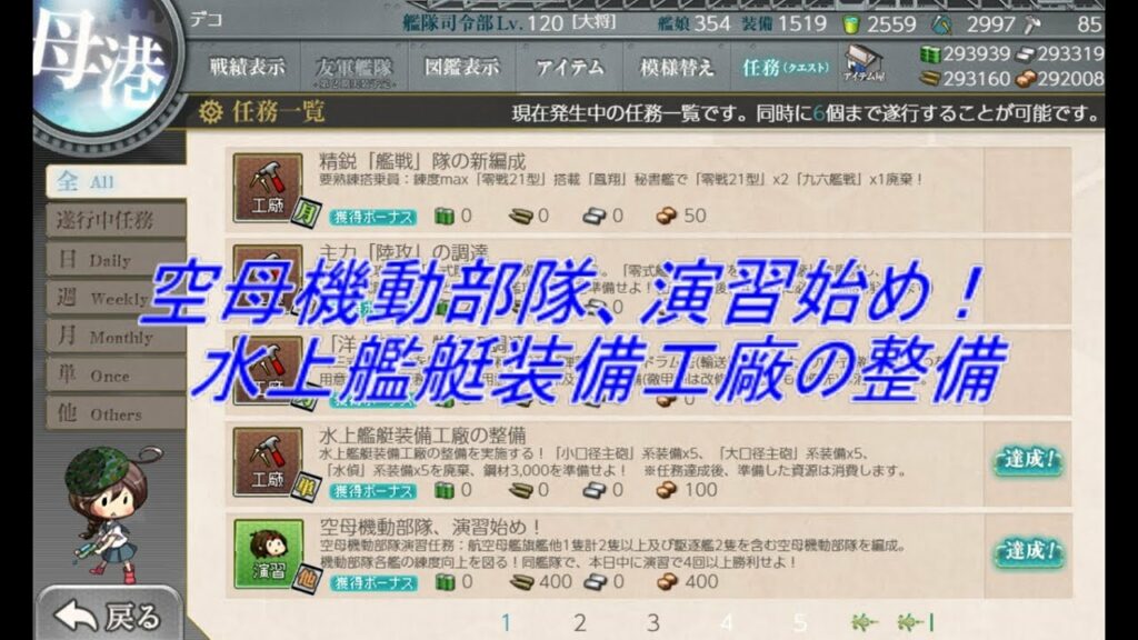 【艦これ】空母機動部隊、演習始め! & 水上艦艇装備工廠の整備