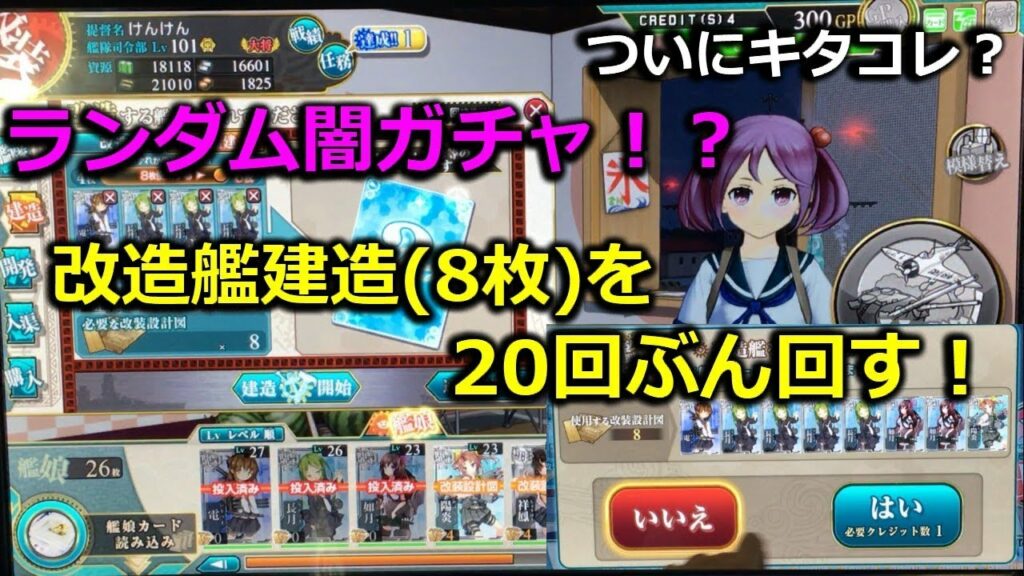 改造艦建造8枚の方を20回回してきました。あまり回数は多くないですが、復帰を考えている提督さん、新規で始めようとしている提督さん、今ですよ!参考になさってぜひゲーセンへ!